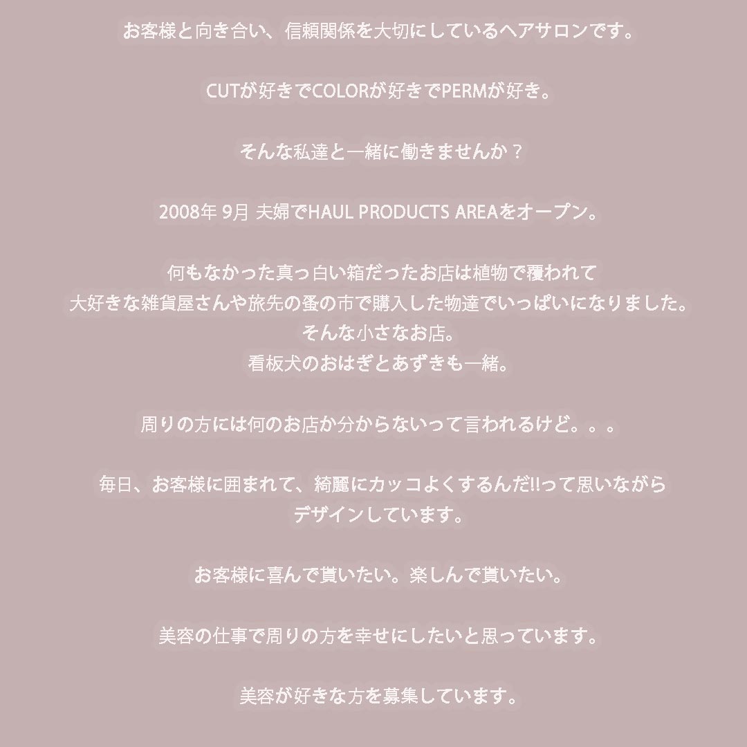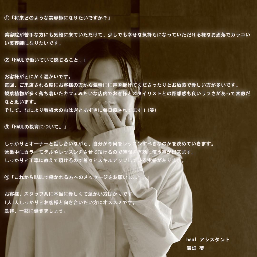 サロン見学や面接希望の方はエントリーフォームまたはInstagram DMよりご連絡下さい。お電話でも大丈夫です。instagram【haul.osaka】06-4798-8866